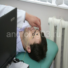 Интенсивность стимула подбирали вручную, таким образом, чтобы при стимуляции было видно рефлекторное движение полового члена. Для того, чтобы гарантировать правильность и постоянство результатов, мы выполняем три серии суммаций. В результатах исследования особое значение уделяется времени латентного периода (ЛП), которое определяется от начала стимуляции дорсального нерва (ветвь полового нерва) до коркового ответа в головном мозге и регистрируется с помощью аппарата Keypoint Portable (рис. 3).